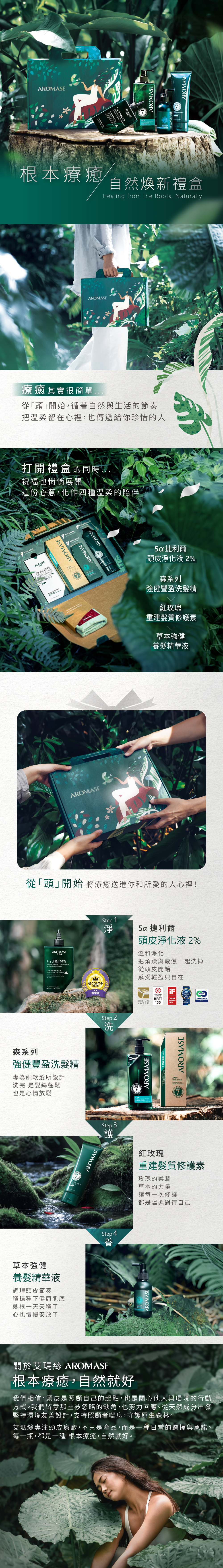★產品組合:5α捷利爾頭皮淨化液(2%) 260mL + 森系列◤強健豐盈洗髮精 400mL + 紅玫瑰髮質修護素 175mL草本強健養髮精華液 115mL + 品牌貼心小禮